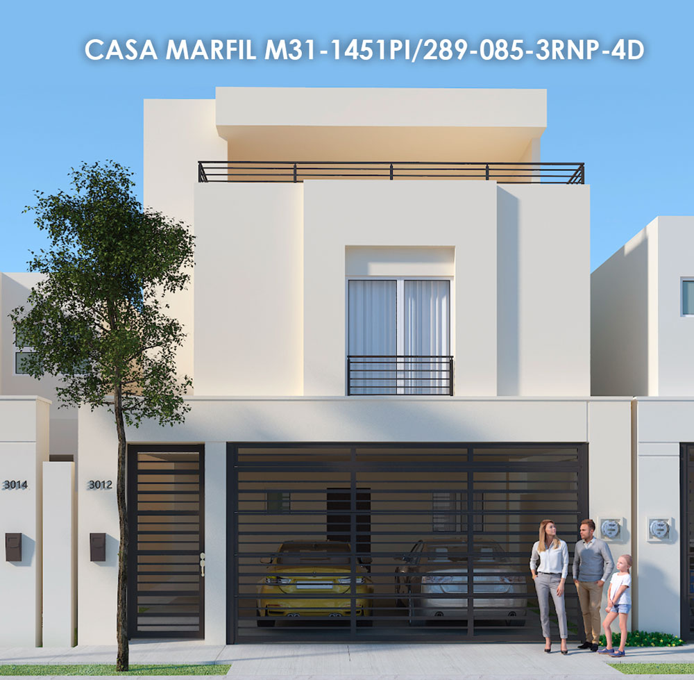 3 recámaras, 2 ½ baños, estancia familiar, cochera dos autos.